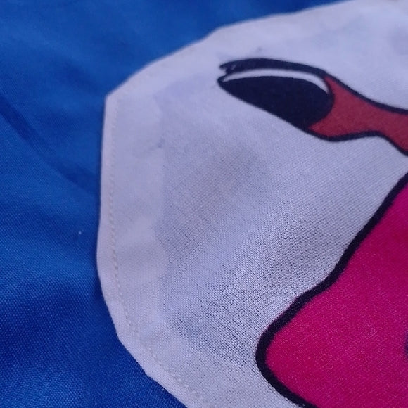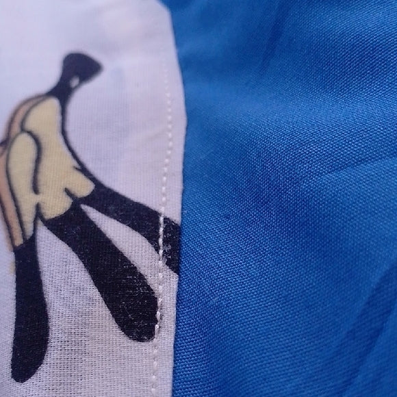 Reimagined from an authentic vintage Lion King bedsheet, this one-of-a-kind jacket blends nostalgia and creativity into a bold, wearable statement. The vibrant blue design featuring Timon and Pumbaa brings 90s Disney magic into a modern, street-ready silhouette.