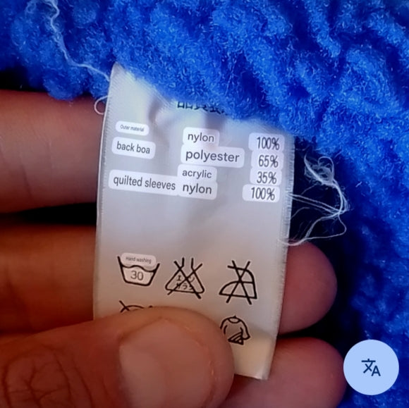FABRIC: Puter Material 100% NYLON BACK BOA 65% POLYESTER 35%Acrylic Quilted Sleeve 100% Nylon