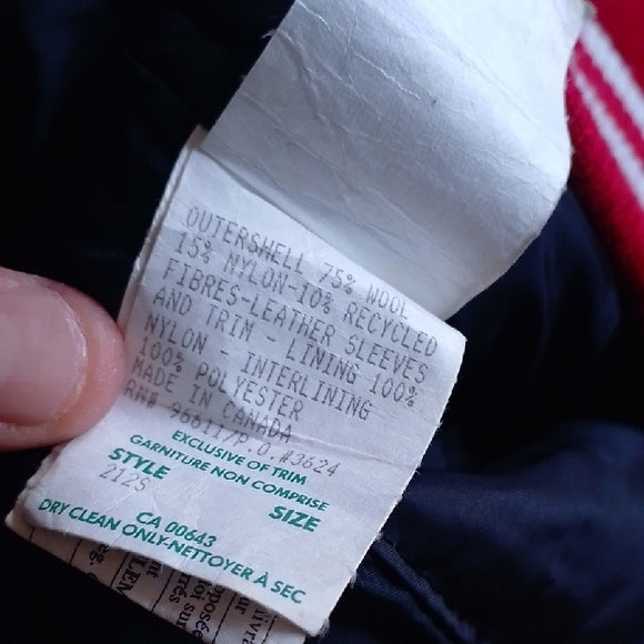 VINTAGE Red and White Stratford Auction Varsity Jacket WOOL/LEATHER