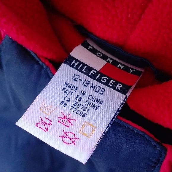 VINTAGE Tommy Hilfiger Navy and Red Kids One Piece Snowsuit