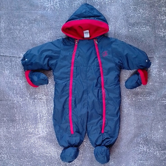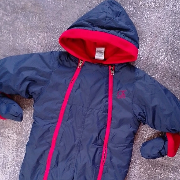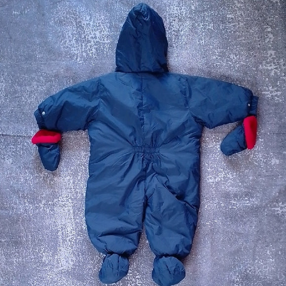 VINTAGE Tommy Hilfiger Navy and Red Kids One Piece Snowsuit GLOVES